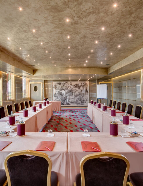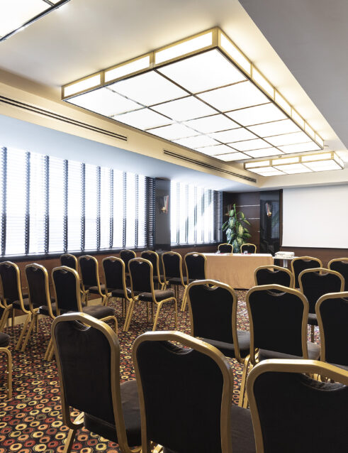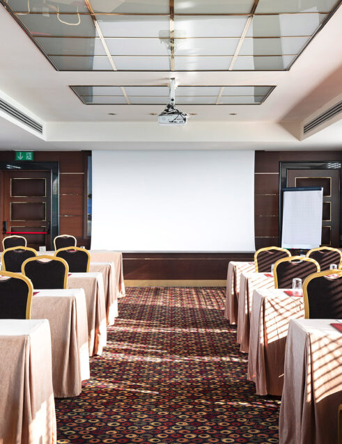 Sala meeting adatta sia per riunioni che per cene di gala o cerimonie, può ospitare fino a 100 persone a platea o a banchetto. Situata a piano terra, dotata di luce naturale. Ha un’altezza di 3 metri e videoproiettore a soffitto.