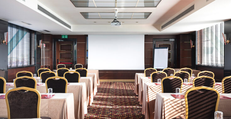 Sala molto luminosa grazie alla doppia esposizione sul verde circostante ed ai rivestimenti specchiati che caratterizzano le pareti. Situata all’ultimo piano, oltre alla luce naturale, garantisce una vista completa sul parco e sul Forum di Assago.