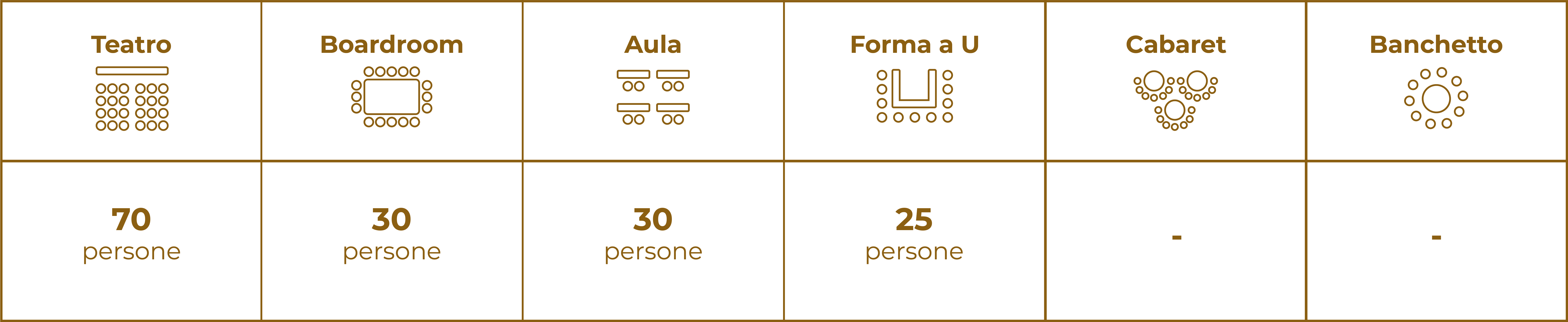 La sala è molto luminosa grazie alla doppia esposizione ed ai materiali specchiati che caratterizzano le pareti. Ha una capienza di 70 persone e vista panoramica sul parco e sui dintorni.